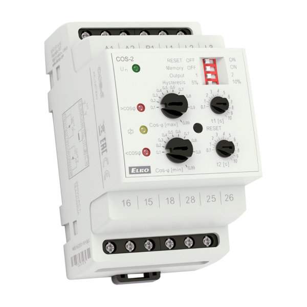 Przekaźnik COS-1 kontroluje w sieciach 3-fazowych lub 1-fazowych cos-φ pomiędzy prądem i napięciem